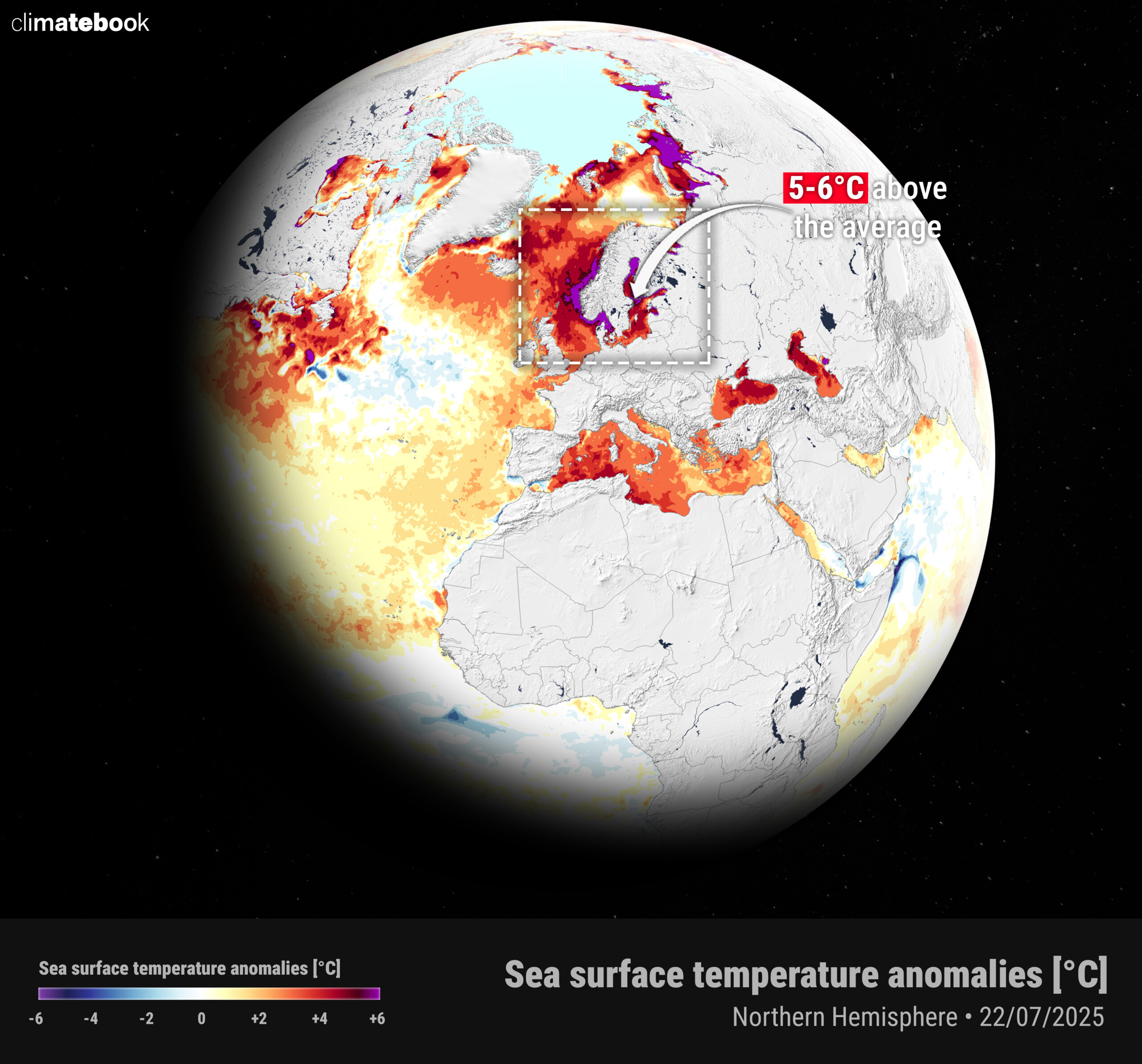 Το πρόσφατο έντονο και παρατεταμένο κύμα ζέστης που επηρέασε τη Βόρεια Ευρώπη, και ιδιαίτερα τη Σκανδιναβία, άφησε έντονο αποτύπωμα ακόμη και στις θάλασσες. Στις 22 Ιουλίου 2025, η θερμοκρασία της επιφάνειας της θάλασσας σε τμήματα της Βαλτικής και σε περιοχές εντός του Αρκτικού Κύκλου παρατηρήθηκε από δορυφόρους έως και 5–6°C πάνω από τον μέσο όρο για την εποχή. Σε απόλυτες τιμές, η θερμοκρασία επιφάνειας σε ορισμένα σημεία της Βαλτικής ξεπέρασε τους 23°C, καθιστώντας τη πιο θερμή ακόμη και από περιοχές της Μεσογείου.