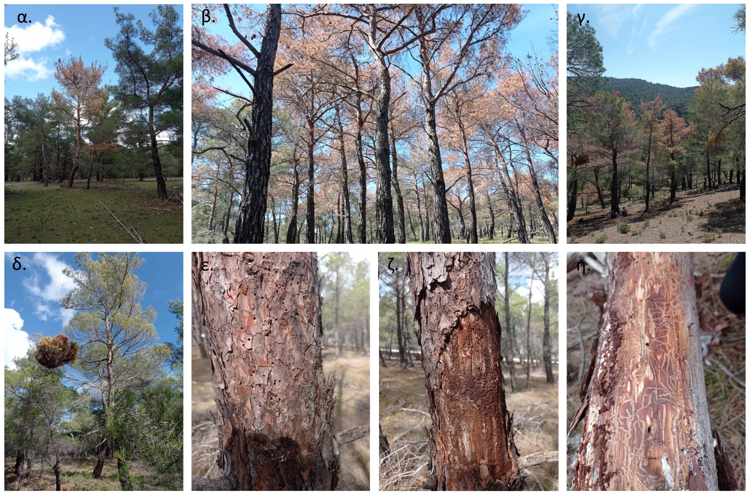 Μια τέτοια περίπτωση παρατηρήθηκε στη Λέσβο κατά την περίοδο 2021–2022, όταν καταγράφηκε εκτεταμένη θνησιμότητα της τραχείας πεύκης (Pinus brutia), η οποία συνδέθηκε με πληθυσμιακή έξαρση φλοιοφάγων εντόμων. Για τη συστηματική διερεύνηση του φαινομένου, ερευνητές από το Πανεπιστήμιο Αιγαίου (Τμήμα Περιβάλλοντος), το Πανεπιστήμιο Πατρών (Τμήμα Αειφορικής Γεωργίας) και από τον ΕΛΓΟ ΔΗΜΗΤΡΑ (Ινστιτούτο Δασικών Ερευνών), ανέπτυξαν ένα ολοκληρωμένο αναλυτικό πλαίσιο μελέτης που συνδύασε δεδομένα τηλεπισκόπησης, επιτόπια τεκμηρίωση και χωρικές στατιστικές αναλύσεις.
