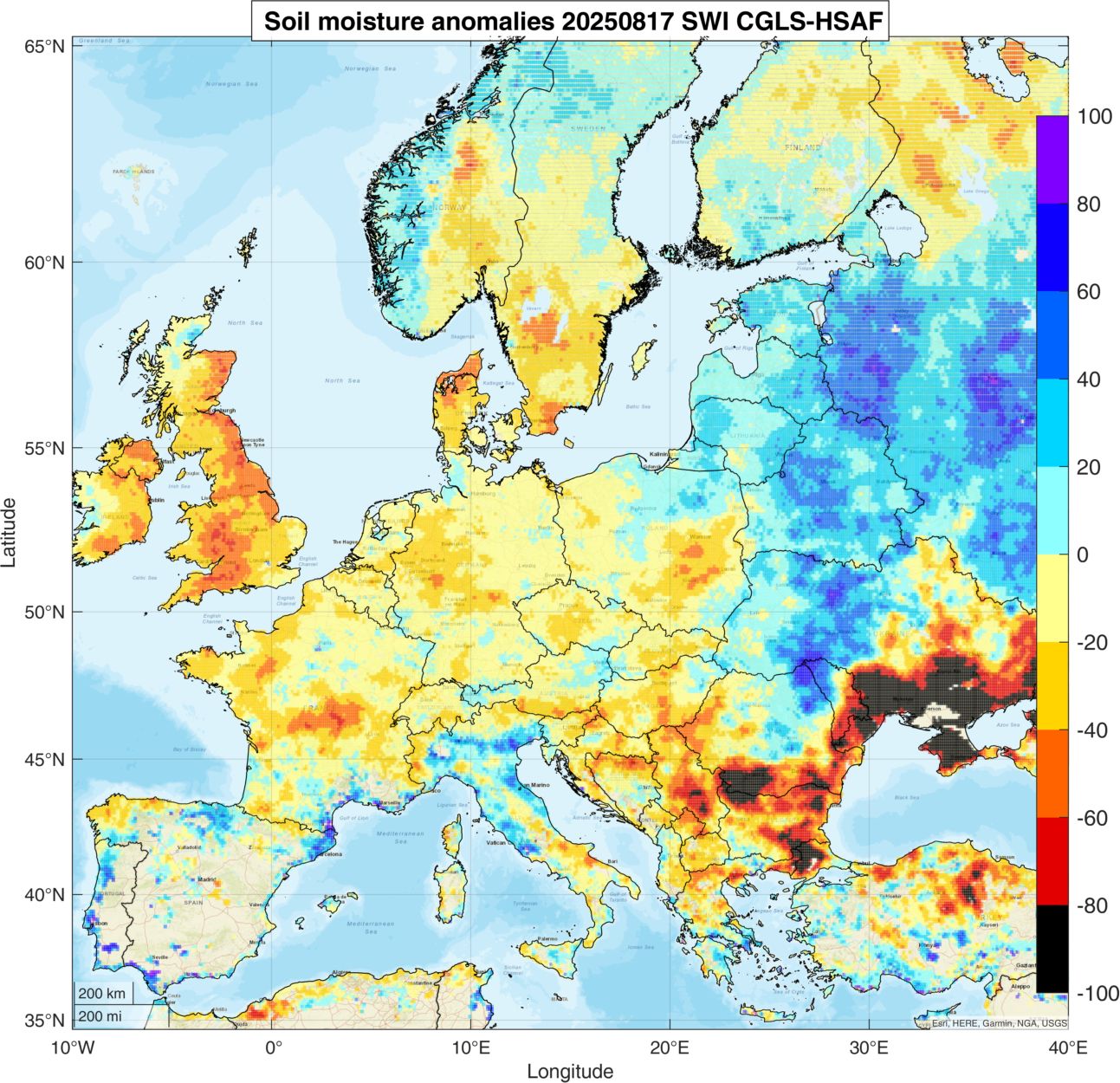 Συνολικά, ο χάρτης αποτυπώνει μια γενικευμένη εικόνα ξηρασίας στη Νοτιοανατολική Ευρώπη και τα Βαλκάνια, με τις περιοχές γύρω από τη Μαύρη Θάλασσα, τη Βουλγαρία και τον Έβρο να πλήττονται περισσότερο. Η Δυτική Ευρώπη και η Σκανδιναβία εμφανίζουν ηπιότερες ανωμαλίες, ενώ σε ορισμένα τμήματα της Ιβηρικής χερσονήσου παρατηρούνται ελαφρώς θετικές αποκλίσεις (πλεόνασμα υγρασίας).